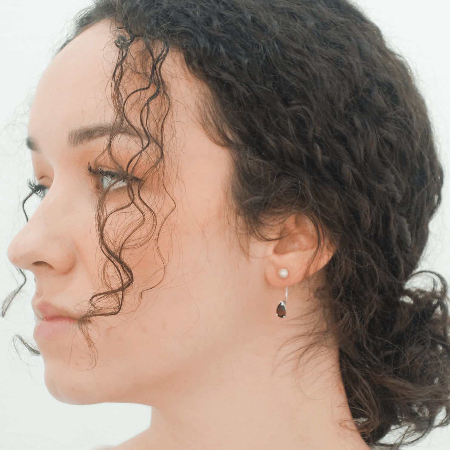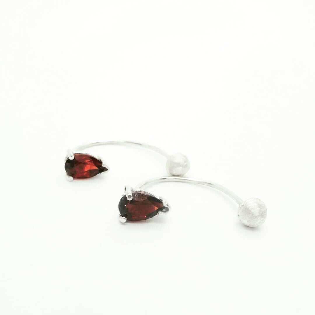 Sterling silver earrings with Garnet are inserted into the ear from the back and closed with screws.