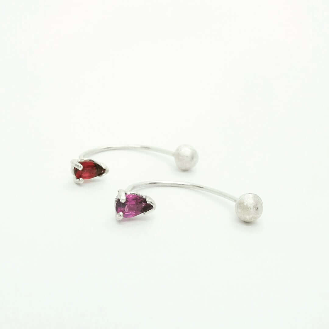 Sterling silver earrings with Rhodolite are inserted into the ear from the back and closed with screws.