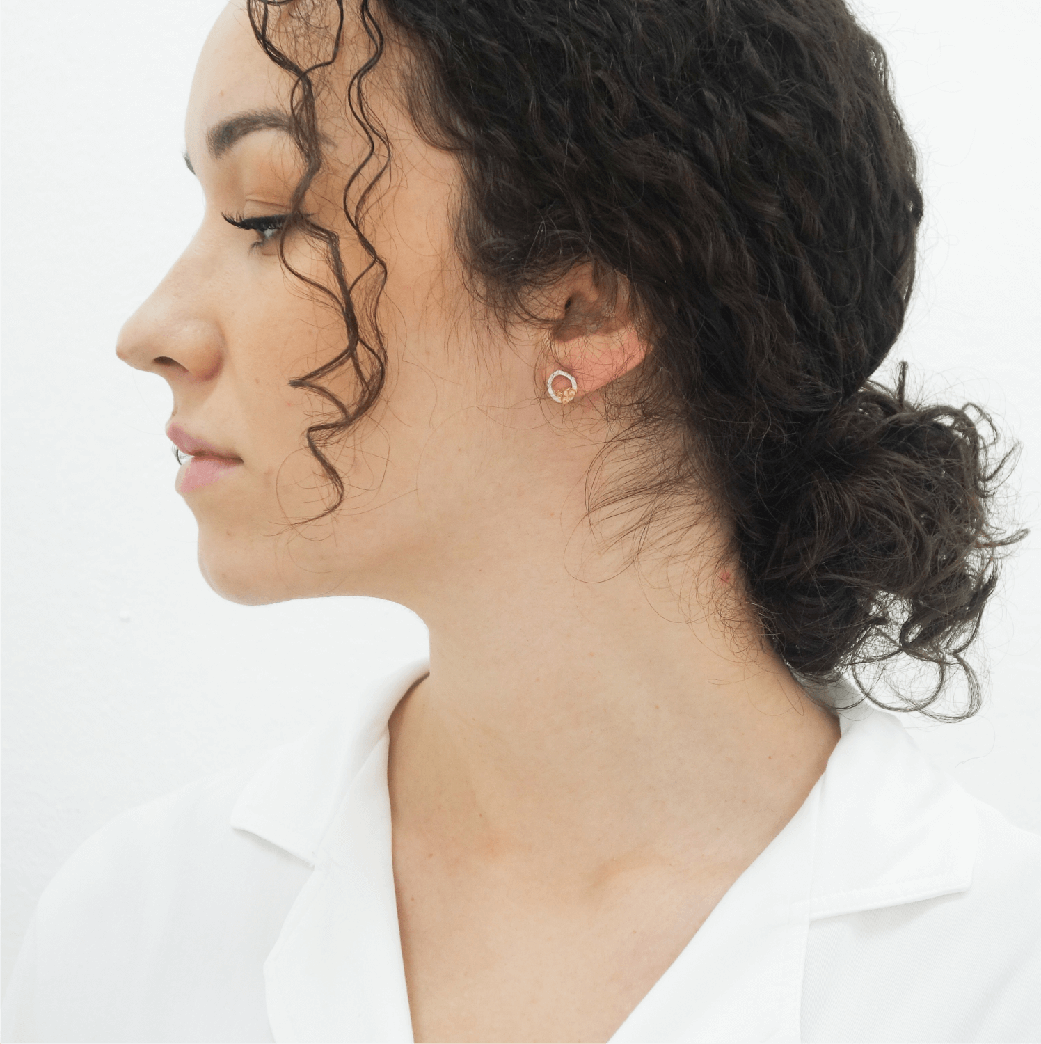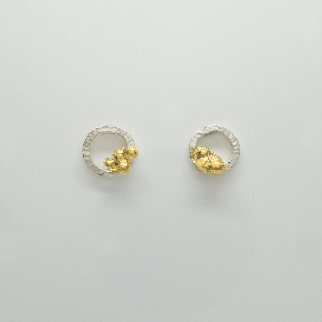 Sterling silver studs with fine gold attached to the granules with the Keum-boo technique.
