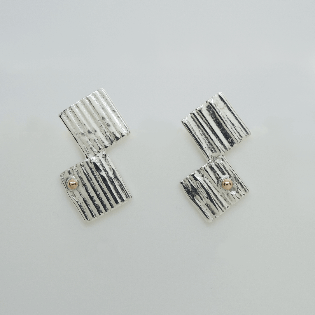 Silver and gold square earrings