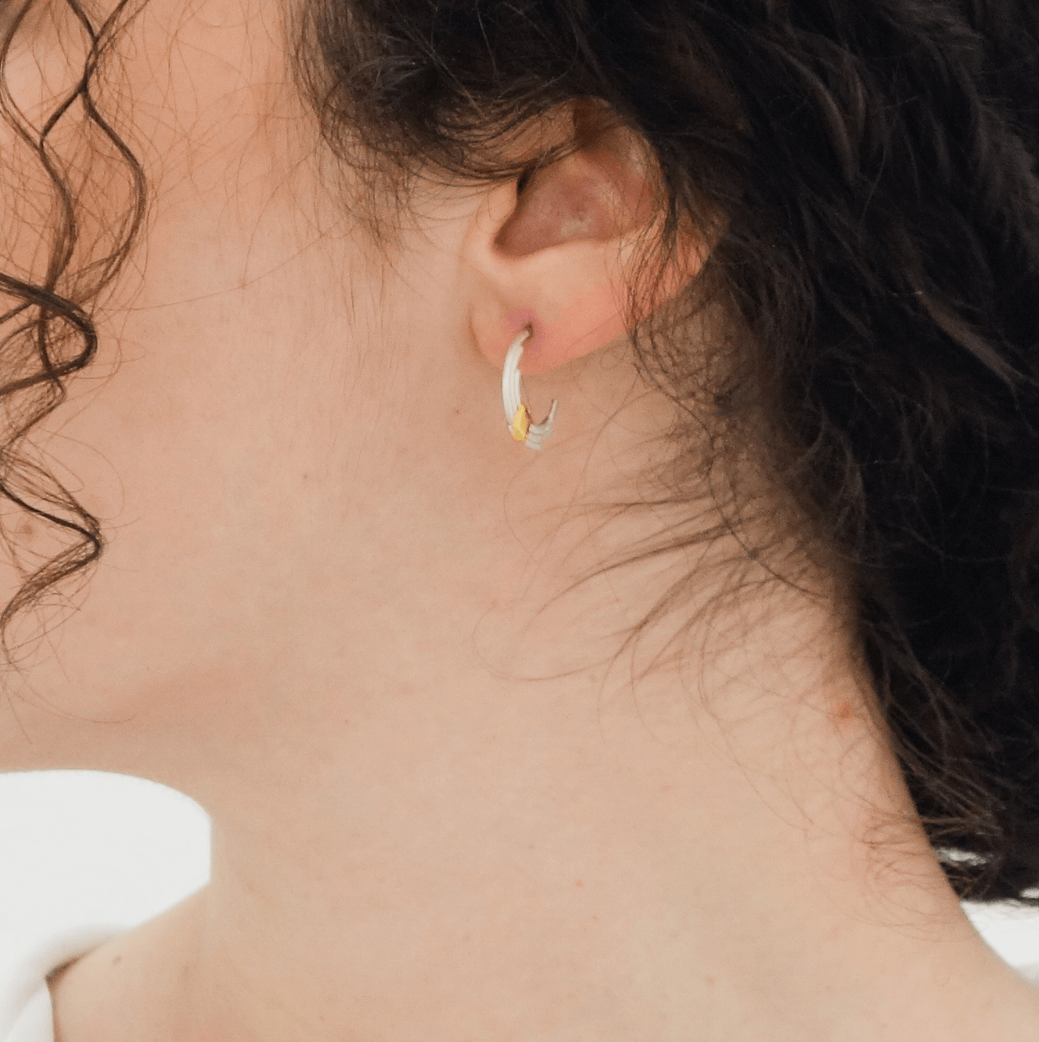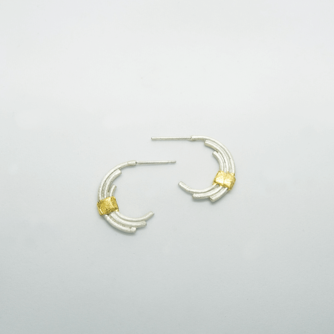 Sterling silver earrings with satin surface and fine gold attached to the silver with the Keum-boo technique.