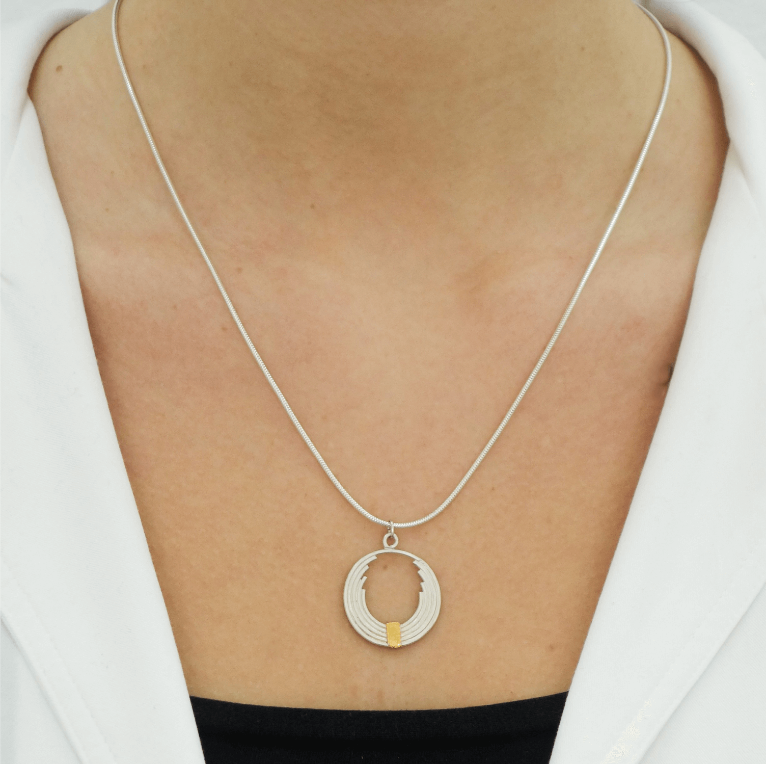 Sterling silver necklace with fine gold, made with the Keum boo technique.