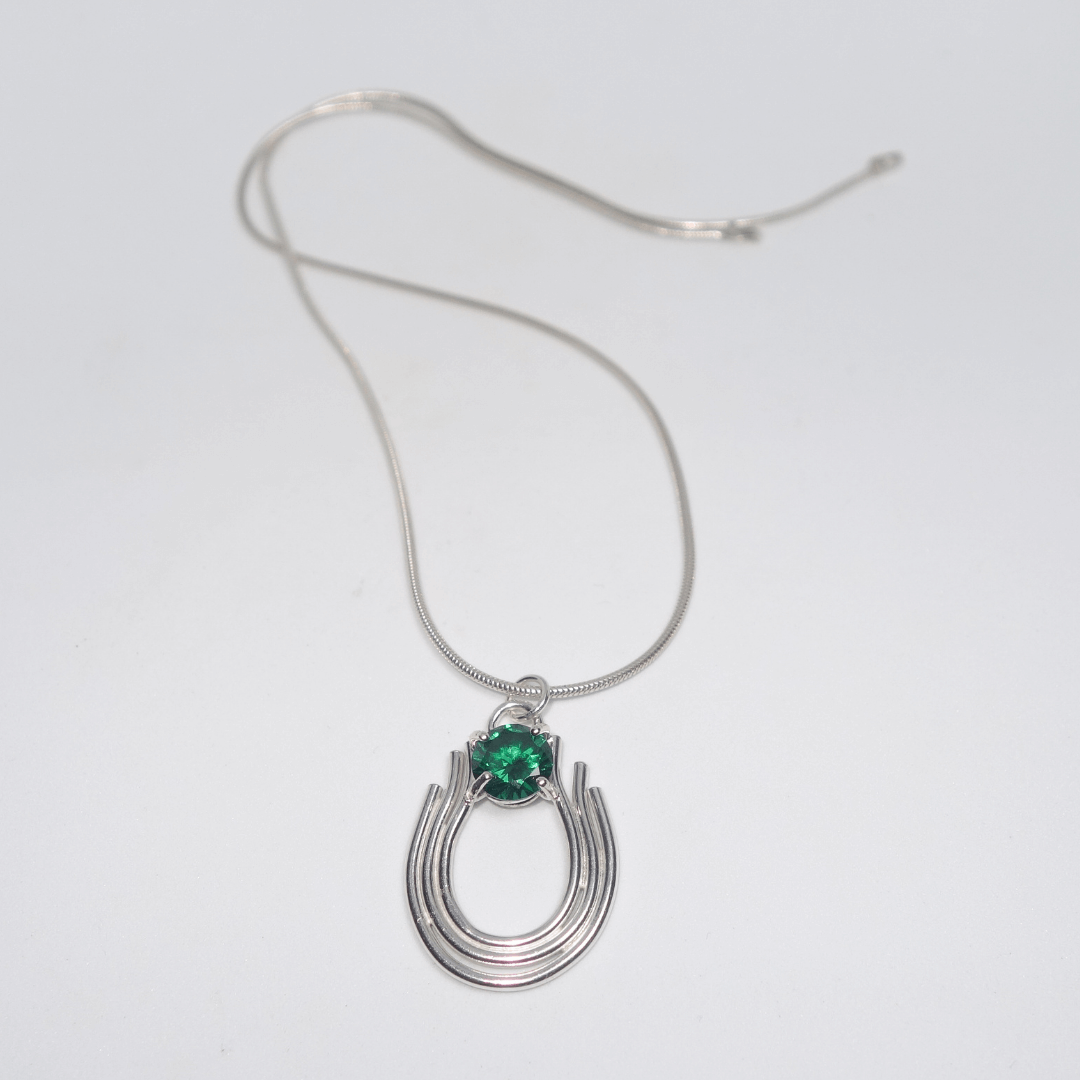 Silver necklace with green stone